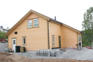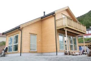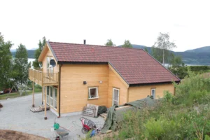 Romslig treetasjes enebolig i rød trekledning med gjennomtenkte planløsninger, store vindusflater og solide materialvalg som sikrer kvalitet og komfort i henhold til norske byggeforskrifter.